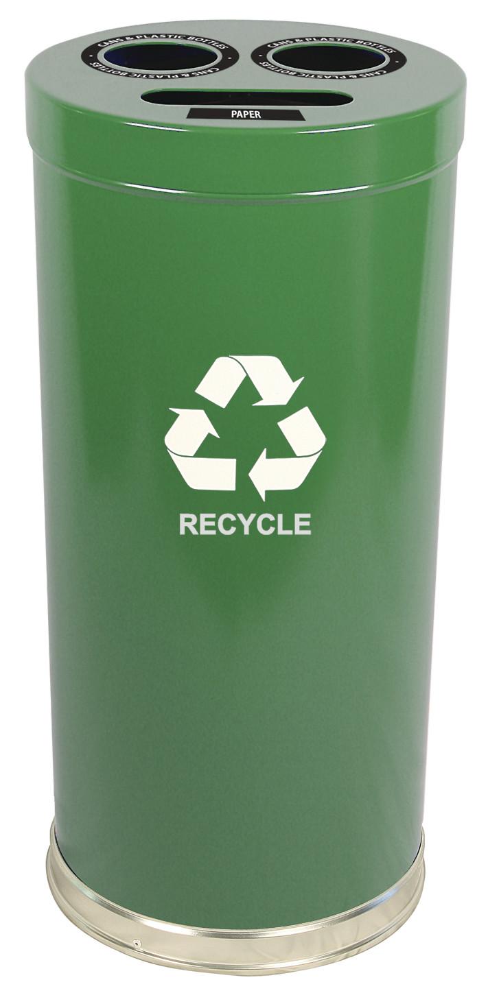 The Single Stream Unit with a 7″ Round Opening in green is a practical and efficient solution for single-stream recycling. Its large 7″ opening allows for easy disposal of bottles, cans, and other recyclables, making it ideal for offices, schools, and commercial spaces. The green finish clearly identifies it as a recycling unit, promoting proper waste separation and environmentally friendly practices.